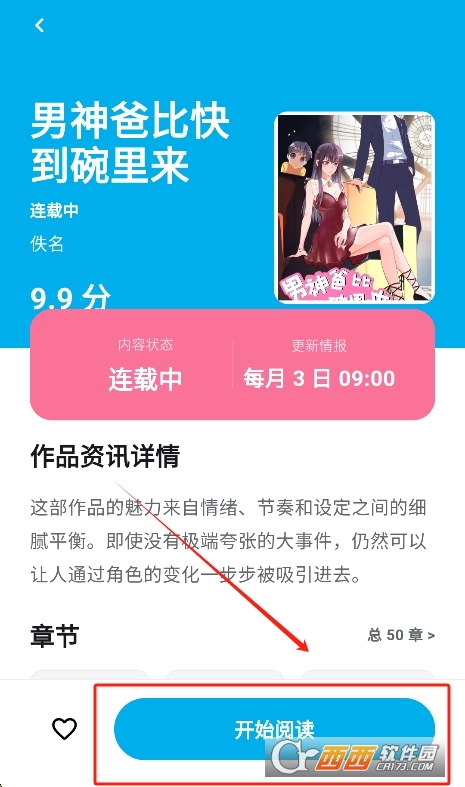 3、点击漫画封面进入详情页,查看简介、评分、标签、目录。
