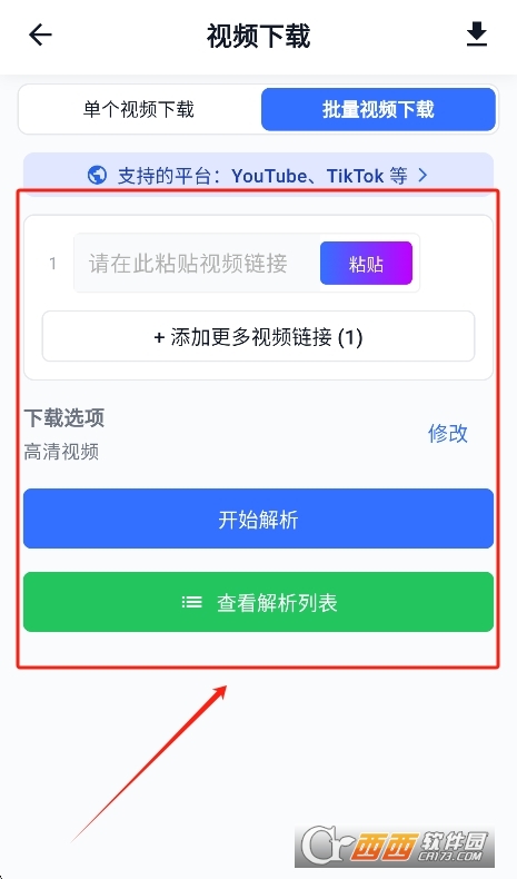 1、粘贴链接自动识别视频,支持选择画质(原画/高清/流畅)和格式(MP4/MKV/AVI等)。