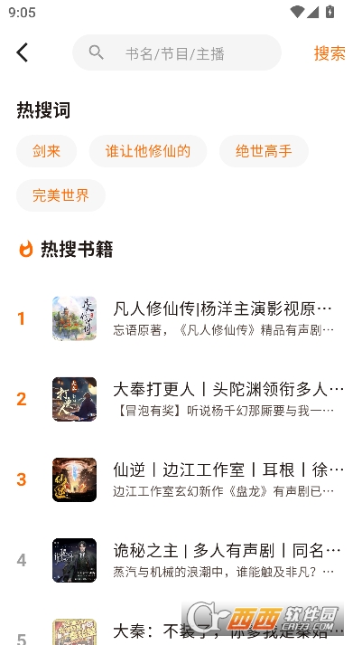 妙狸趣听app官方最新版是一款纯净免费的在线听书软件,汇集海量正版小说书籍,涵盖有声小说,相声评书,广播剧,音乐历史,出版文学等多种类型,每日更新热门章节,还能根据书名/节目/主播的关键词进行快速搜索直达,点击感兴趣的内容就能直接播放,无需任何会员付费也没有广告干扰,为用户带来纯净优质的听书体验。