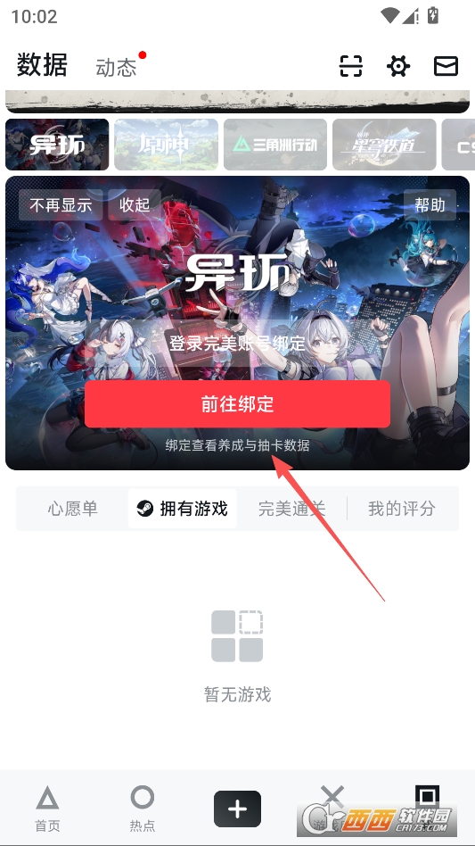 绑定成功进入异环专区,点击左上角按钮