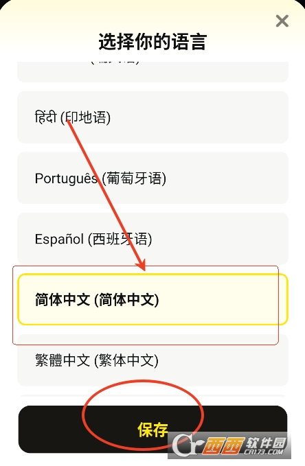 3、点击简体中文后点击最下方的保存即可