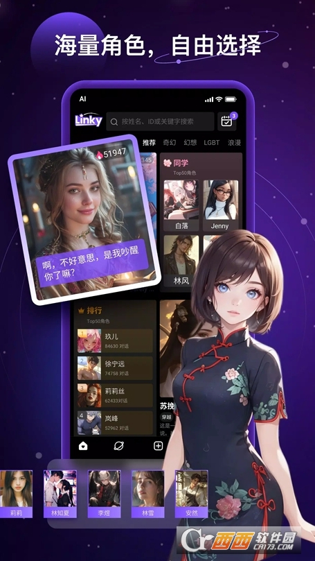 海量角色库随心选择,各式各样的虚拟人物一键解锁,随时开启一对一沉浸式对话交流。