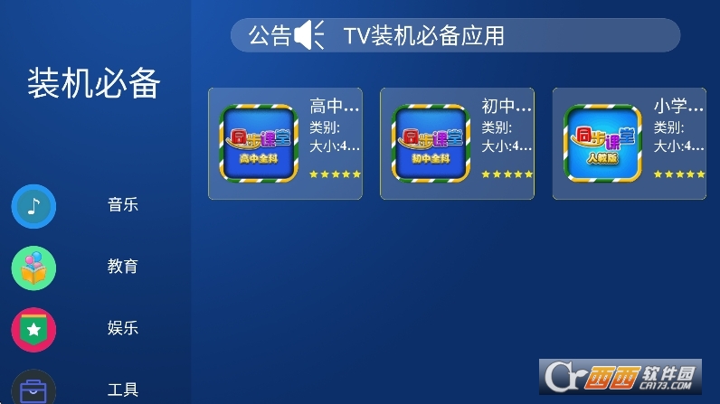 装机必备tv版最新版本下载是一款专为电视端打造的应用市场软件,致力于为用户提供优质、便捷的TV端应用下载服务。平台汇聚了海量专为大屏优化的应用资源——涵盖视频点播、电视直播、教育学习、健身运动、音乐K歌、工具实用等全品类,所有安装包均经过专业检测,安全可靠。界面简洁,操作直观,一键即可完成下载和安装,让电视用户轻松扩展大屏功能,享受更丰富的智能电视体验。