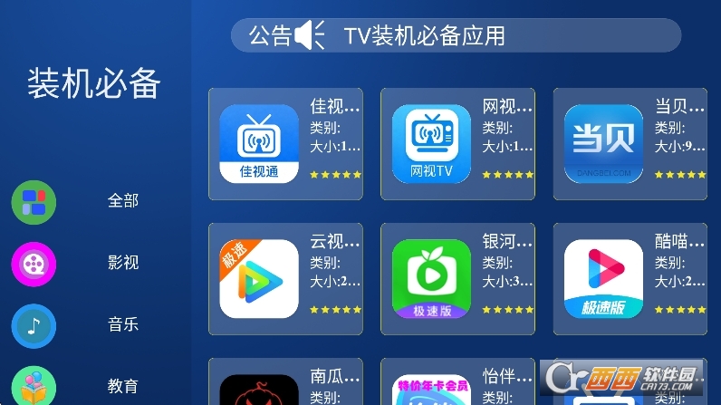 装机必备tv应用市场安卓版是一款tv端的应用市场软件,打造优质的应用市场工具,非常好用,提供专业的tv端安装包资源,非常实用,打造优质的下载安装包功能,一键安装到本地,体验沉浸式的精彩下载工具,有需要的小伙伴们欢迎来下载试试吧。