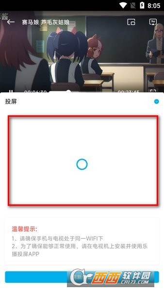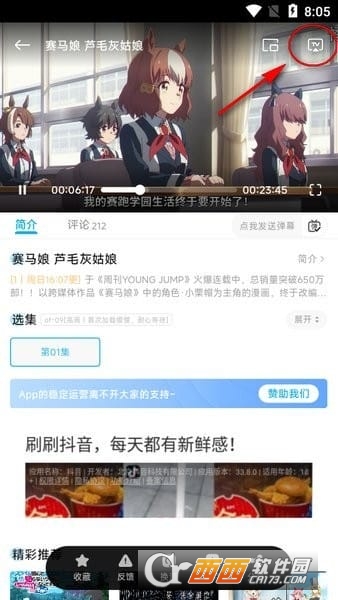 然后选择要观看的动漫,进入播放页面后,点击右上角的“TV”按钮;