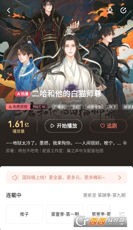 猫耳fm国际版安装包最新版是一款非常精彩的免费广播剧软件,界面语言依旧采用中文显示,并且可以与国内版账号无缝互通——收藏夹、订阅内容、购买记录、播放进度全同步。平台广播剧及ASMR作品极为丰富,从一线配音演员演绎的大IP作品,到小众优质的原创内容,均可轻松找到并畅听。