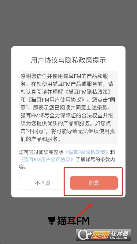 1、在西西软件园下载软件后,进入软件,点击同意隐私协议