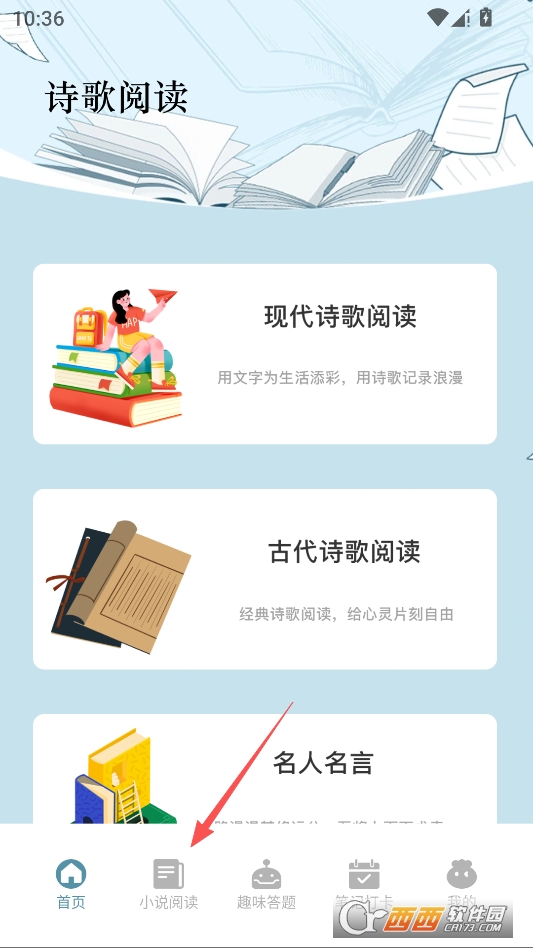 进入主页点击下方小说阅读按钮