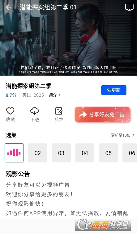 3、播放器功能:倍速播放(0.5x-2.0x)、投屏(DLNA/AirPlay)、播放记忆(自动续播)、跳过片头片尾、屏幕亮度/音量滑控。