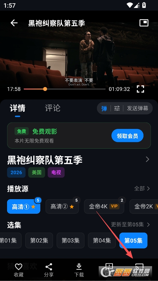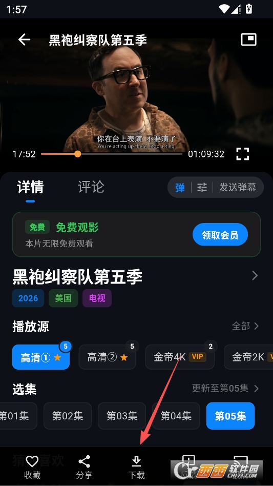 开始播放之后,最下方提供多种功能,例如可以直接下载