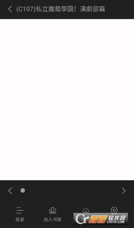 3、单击屏幕呼出菜单,调节亮度、切换翻页、跳转章节、添加书签。