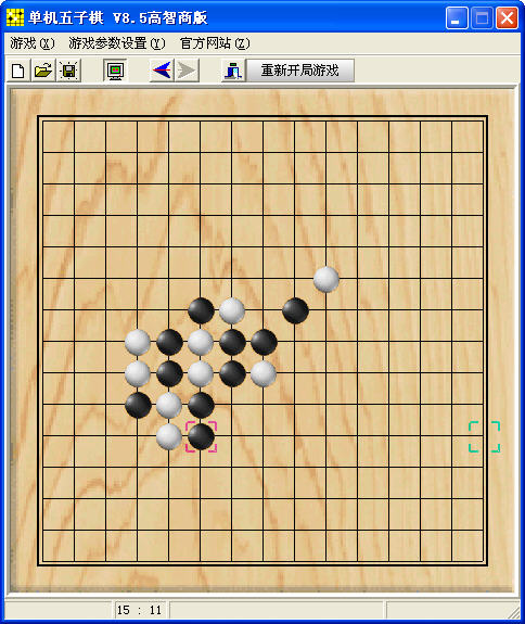 五子棋游戏,支持人机对战,双人对战2种模式。游戏带有计时,显示下棋步数以及保存游戏进度等功能。程序的AI很高,自认为是高手的化可以试着和电脑对弈一局。
