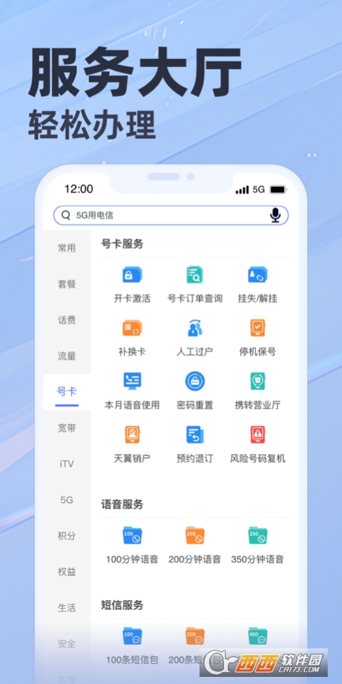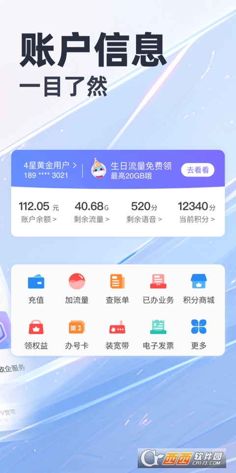 1、基础功能:话费查询、账单插叙、流量查询、交费充值、积分查询兑换、查号码、业务办理、网络测速等。