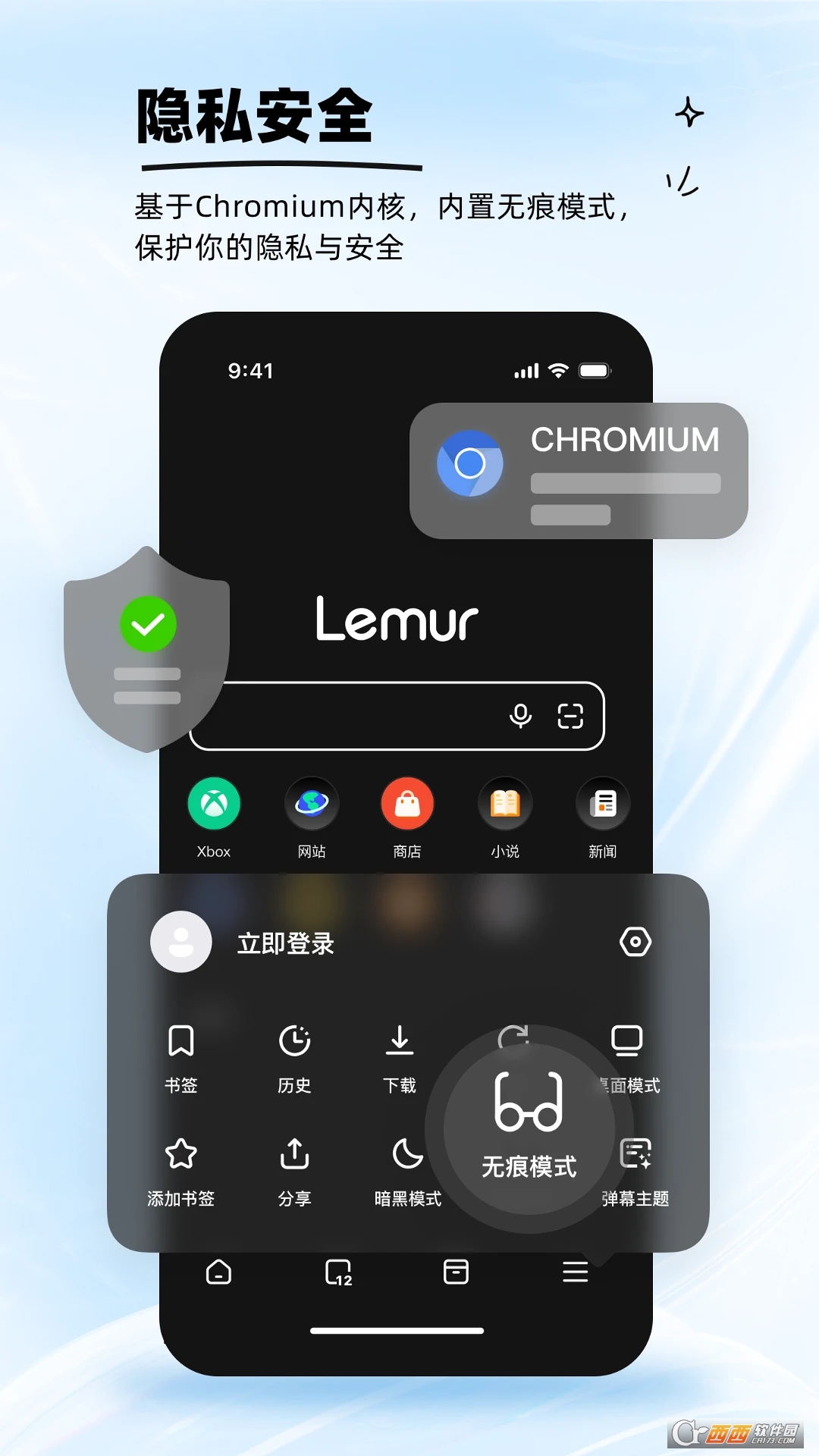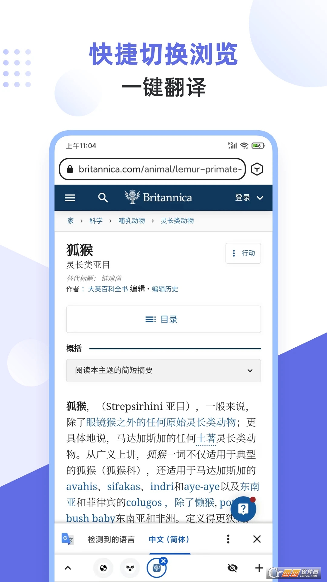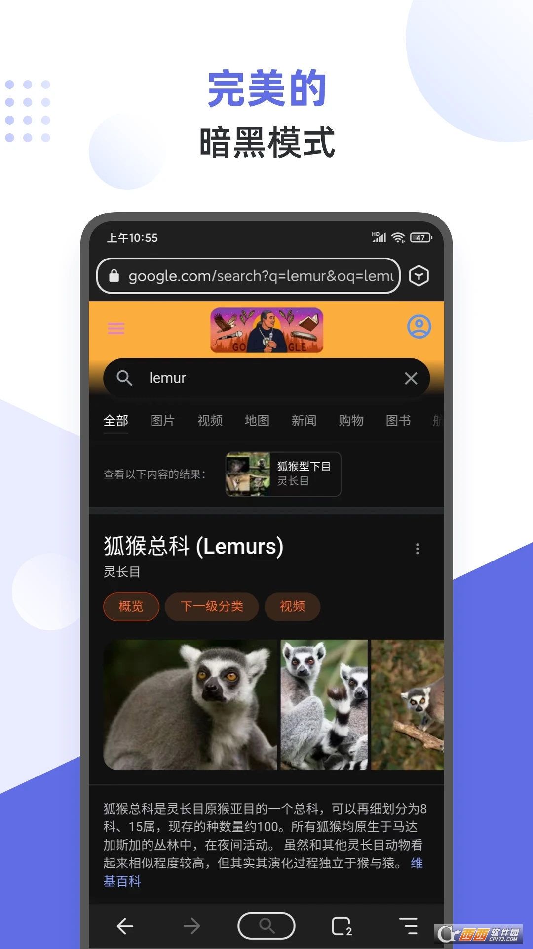1.首先在西西软件园下载安装狐猴浏览器,点击此处进行下载安装,将狐猴浏览器APP安装在手机上(狐猴是一款支持直接安装Chrome和Edge商店扩展的手机浏览器)。