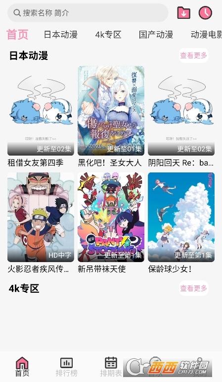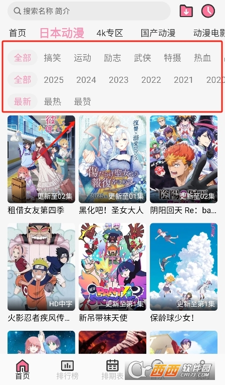 3、尝试不同类型的动漫栏目,支持动漫搜索