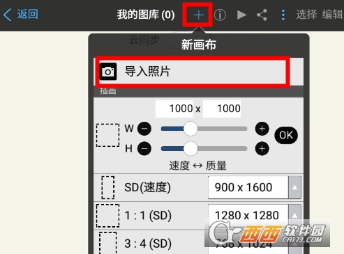 2、点击创建新画布,选择导入照片