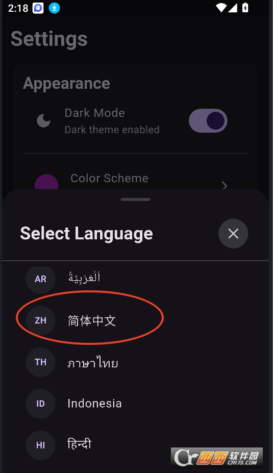 在西西软件园下载并且安装这个软件,打开软件即可,点击右下角的setting,点击lanuage