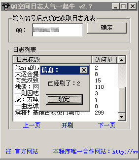 qq空间人气一起牛是一款用来提升qq空间人气的超级辅助软件,她能自动模拟无数个真实用户访问你的qq空间,从而达到刷qq空间人气值的目的,同时还能提升qq空间被随机访问到的机率,从根本上解决有人气没留言的问题