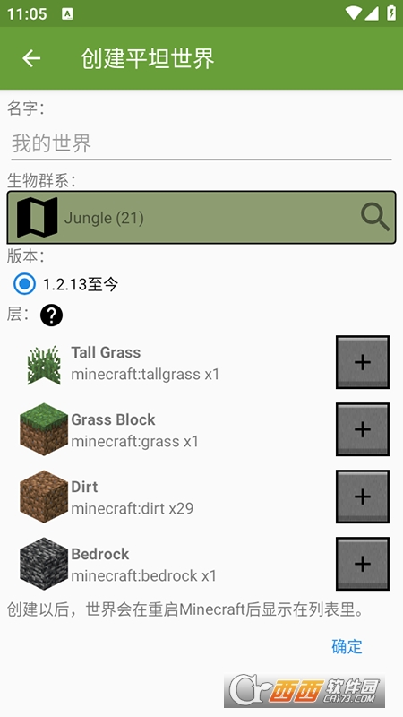打开btr后,会出现下面的画面。除了显示存档外,下面还有一个“+”号,用来制作超平坦存档。