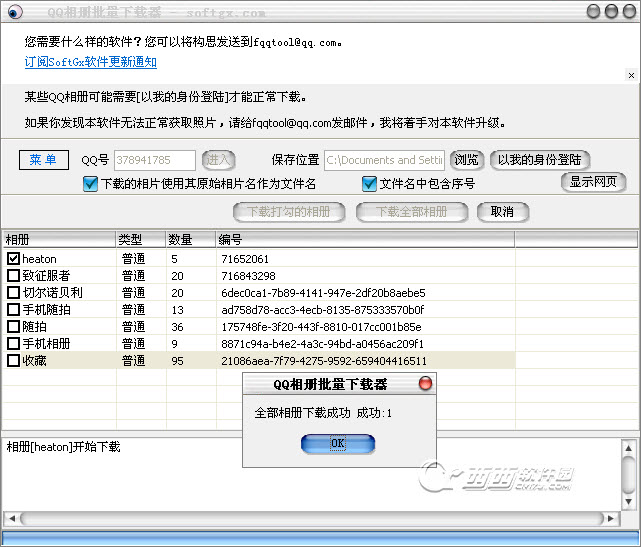 一次批量下载全部QQ相册的工具软件,纯绿色版,没有病毒没有木马。