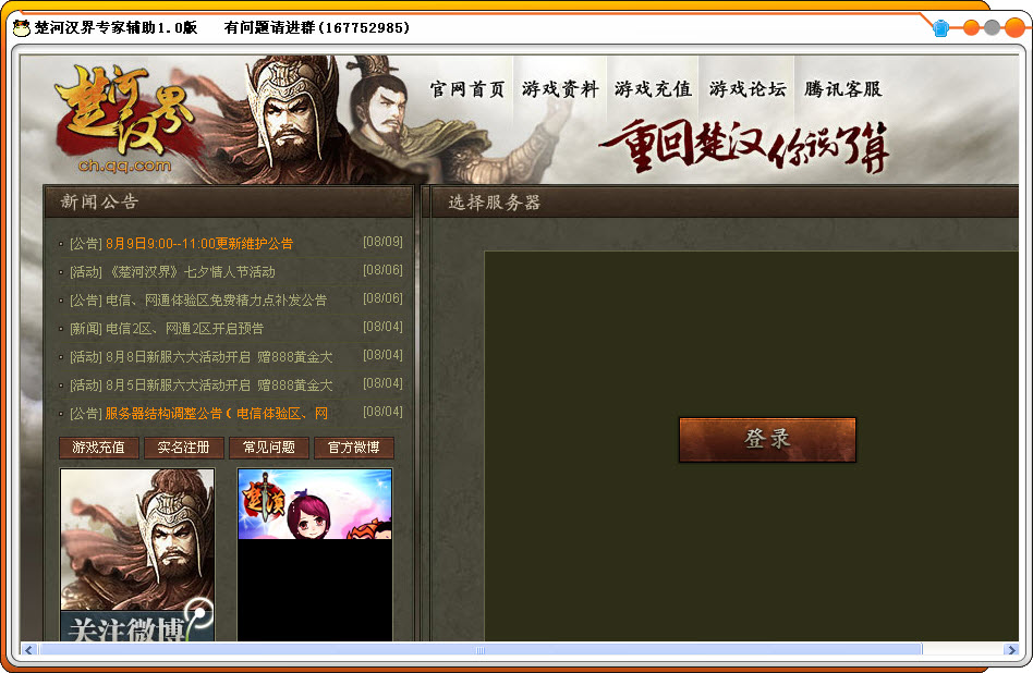 一款以秦末群雄争霸时期为历史背景的网页游戏。玩家扮演楚汉争霸时的一个义士,亲身参与到推翻暴秦,楚汉相争的历史事件。游戏的进度由玩家进行推进,作为楚汉争霸的一份力量,一步一步体验历史甚至改变历史。