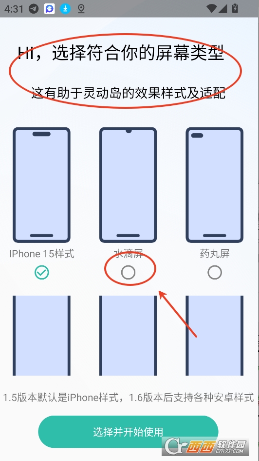 在西西软件园下载并且安装该款软件,打开软件,选择自己喜欢的屏幕类型