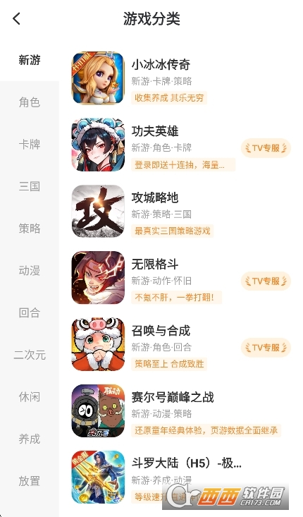 2、游戏分类展示,将所有游戏按玩法类型清晰划分,每个分类下标注游戏特点,方便玩家根据自身喜好快速定位,比如喜欢轻松玩法的玩家可直接进入挂机放置分类。