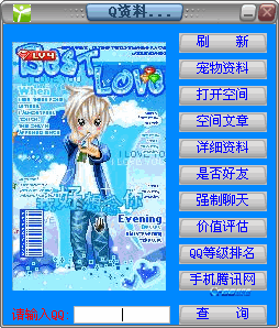 查询任意QQ的宠资料,进入空间,强制聊天,QQ价值评估,查询在线状态等功能。