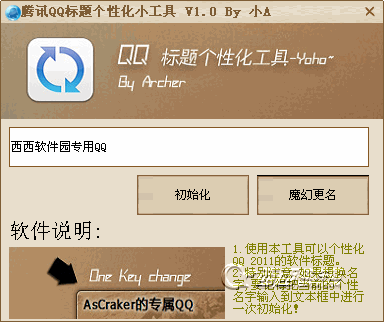 QQ2011标题个性化工具,打开后输入想要修改的登录界面标题名点击“魔幻更名”即可