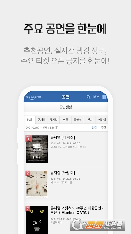 yes24购票软件官方正版下载是一款优秀的购票软件,提供专业的购票服务,涵盖了精彩的免费票务系统,提供多样化的精彩票务活动,各种演出都在这里,打造全新的精彩购票模式,非常受欢迎,感兴趣的小伙伴们欢迎来下载试试吧,更多惊喜应有尽有。