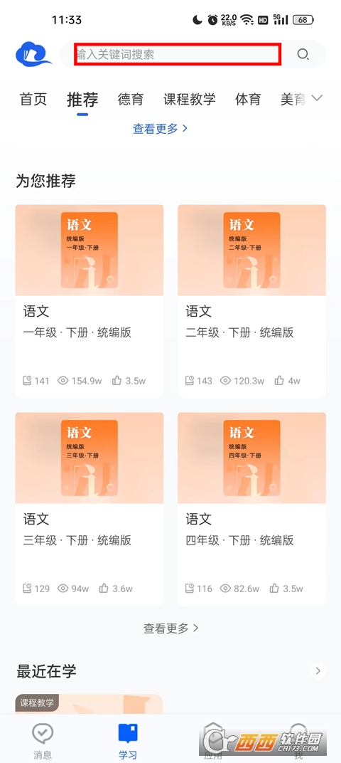 2、搜索需要投屏的学习视频,可以在分类中进行选择。