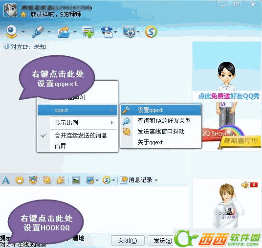 2.增加功能:群内显示完整昵称(打开一个群窗口,消息框内右键->qqext菜单中)