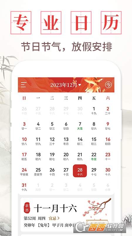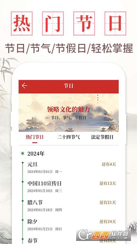 2、节日提醒系统:完整收录法定节假日、传统节日和二十四节气