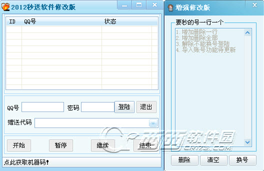 1.增加删除一行2.增加删除全部3.解除不能换号登陆4.导入账号功能待更新