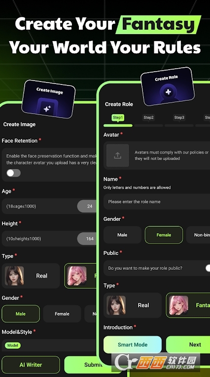 高自由度定制:不满足于预设角色?强大的创建工具等你体验!你可以自定义角色的外貌、性格、声音乃至知识背景,打造你心目中的完美虚拟伙伴。
