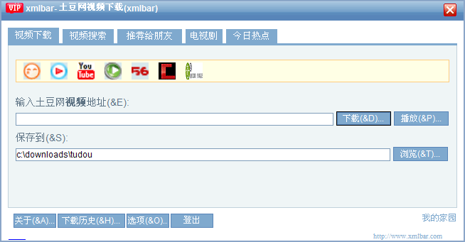 土豆网视频下载(xmlbar)是一个专门用于下载土豆网视频到本机硬盘上的小软件。它不但完全免费而且不含有任何第三方插件,可以完全干净卸载。用户只需输入需要下载的土豆网视频的观看页面地址并按下下载按钮,它就会自动识别后进行下载,或者更方便的使用拖放方法将页面地址从浏览器地址栏拖到本软件的浮动窗口,它就会自动识别后进行下载,下载的文件格式为flv。同时还支持土豆豆单列表下载,更好的是它还支持多个土豆网视频文件同时下载,并能显示出真实的土豆网视频文件的下载地址,下载完后您还可以选择马上播放,而且它还有查看管理下载历史记录和视频搜索的功能。