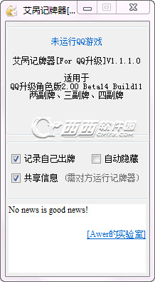 艾呙QQ升级记牌器[For QQ升级]为QQ升级游戏的辅助工具,能够帮助玩家记录各家出过的牌,统计尚未出现过的牌以及玩家手中缺少的花色。