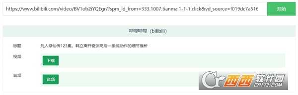 复制视频链接后,粘贴至输入框,然后点击“开始按钮”,等待视频信息解析完成。