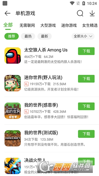 2、点击单机,选择你自己喜欢的,点击后方的下载即可下载手机上开始玩耍;
