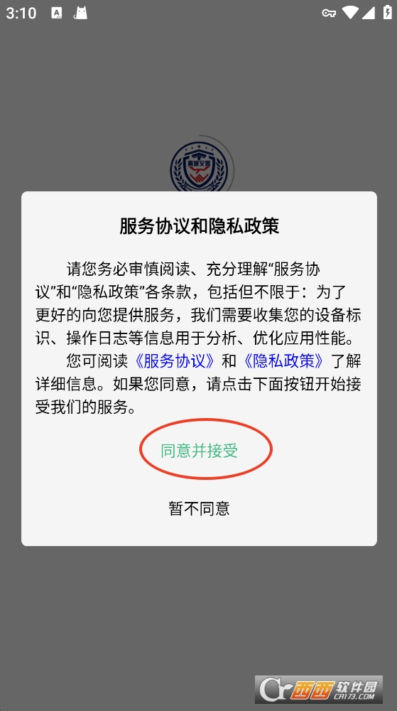 在西西软件园下载并且安装,打开软件点击同意并且接受