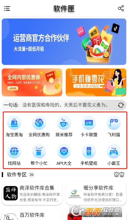 软件匣app是一款提供了众多软件库的聚合平台,核心定位是“以全面的软件库为基础,让用户找到最新资源,覆盖广泛领域,同时涵盖优惠券、手机壁纸等多个板块,为用户提供多元服务的资源聚合类应用”。它聚焦于为用户打造一站式的资源获取与服务平台,成为满足用户软件查找、福利领取、个性化需求的实用工具。
