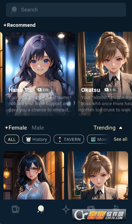 2、角色资源丰富多元,内置庞大的AI角色库,涵盖动漫角色、影视人物、历史名人、虚拟偶像等多种类型,每个角色都有独特的性格设定和语言风格,同时支持角色持续更新,满足不同用户的喜好需求。
