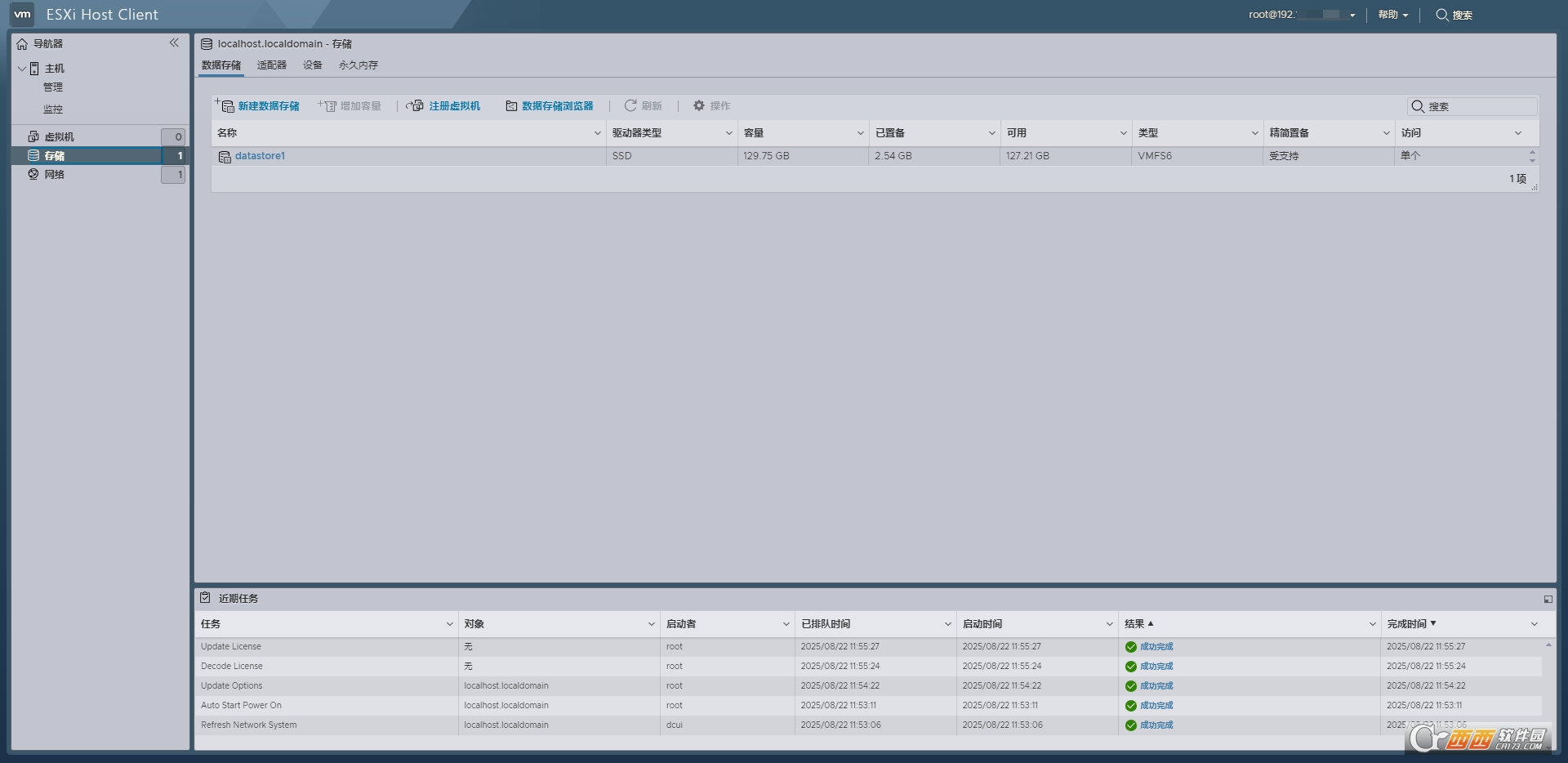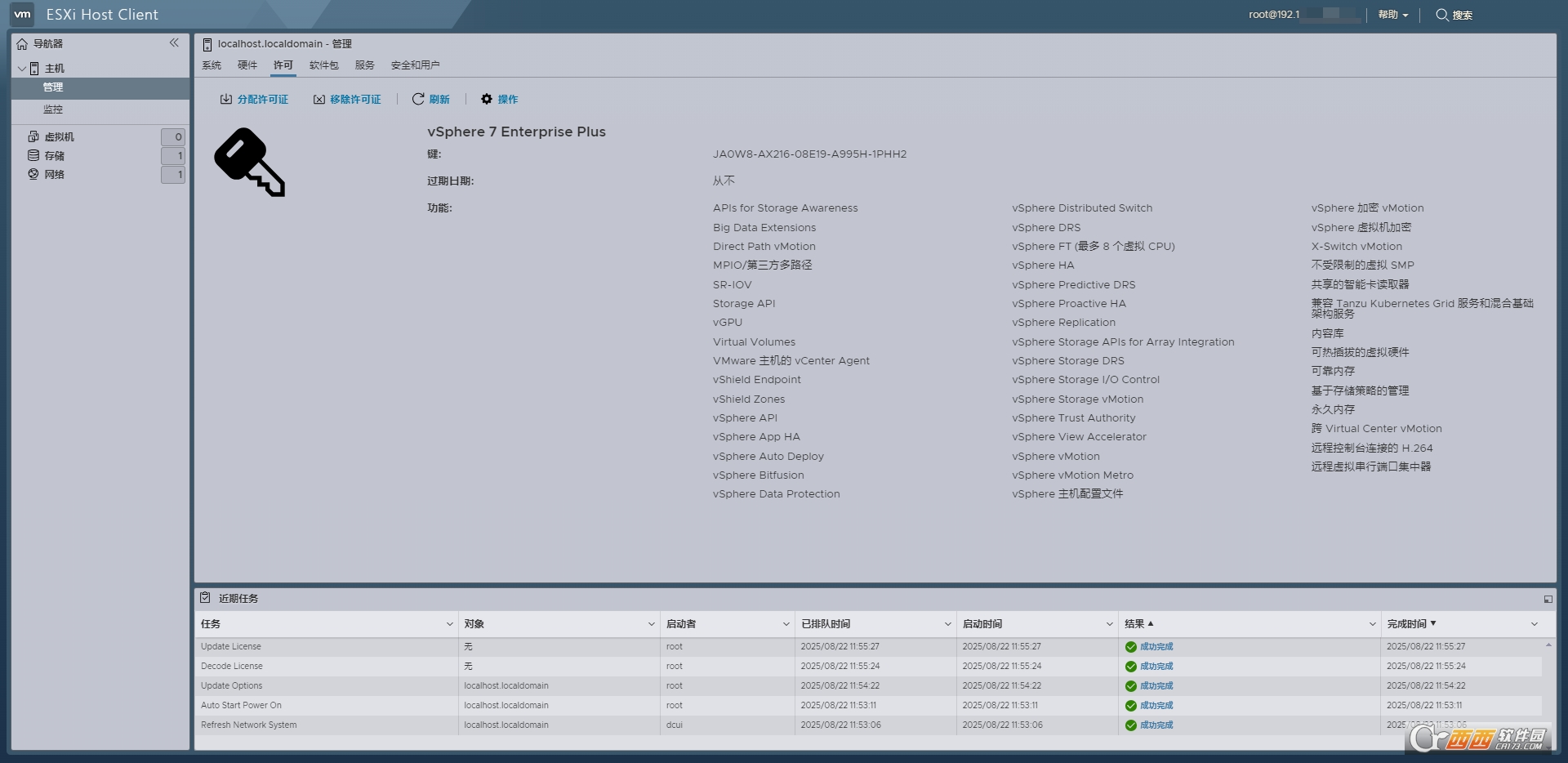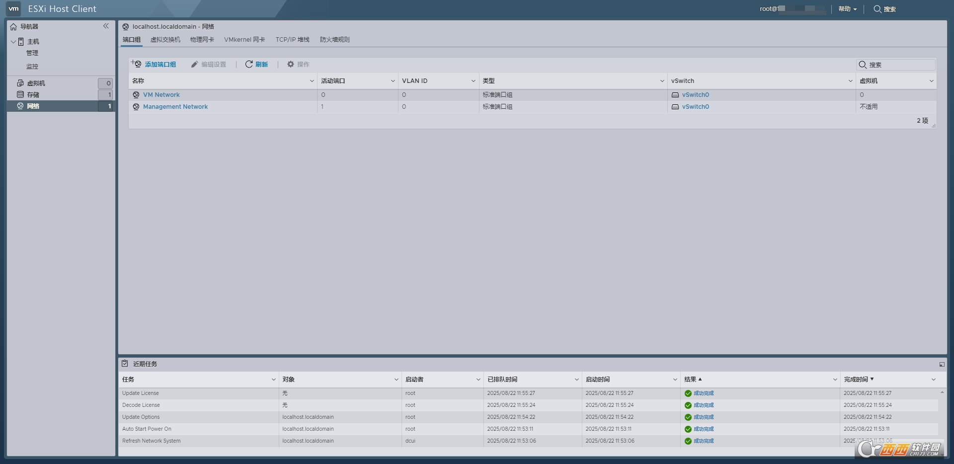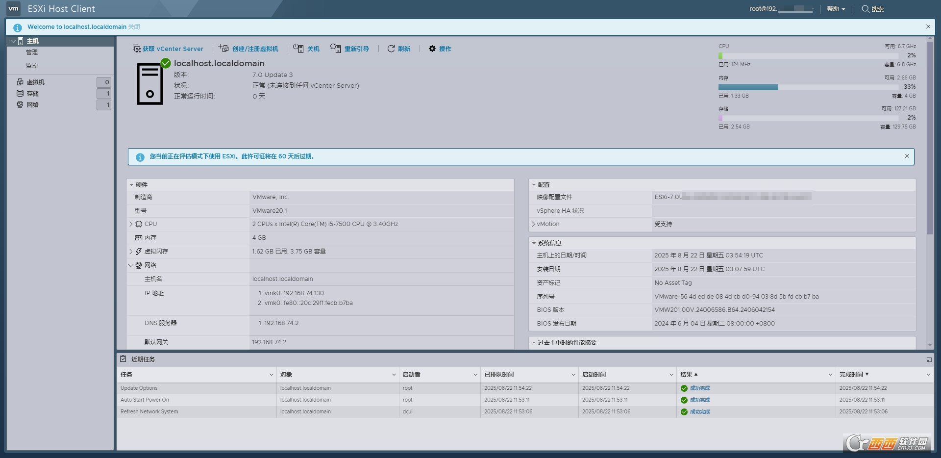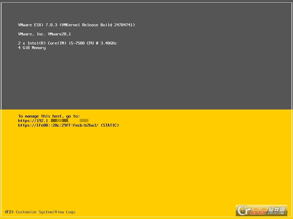 (本站ESXi 7.0U3w集成驱动资源安装成功后测试截图)