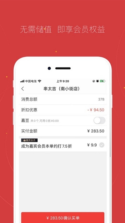 无需储值即享会员折扣,省去单店充卡的烦恼