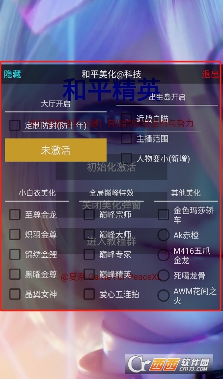 在《和平精英》玩家对个性化游戏体验需求日益增长的背景下,夏奈定制美化2.6应运而生,成为广大特种兵打造专属游戏风格的得力助手。这款软件专注于为《和平精英》提供全方位美化服务,深度挖掘游戏内各类元素的美化潜力,打破千篇一律的游戏视觉局限。无论是追求炫酷华丽的外观,还是钟情简约独特的风格,玩家都能通过夏奈定制美化2.6实现个性化的游戏视觉升级。从枪械皮肤到载具外观,从人物造型到动作特效,软件以强大的功能和便捷的操作,让玩家在《和平精英》的战场上脱颖而出,享受独一无二的游戏美化体验。
