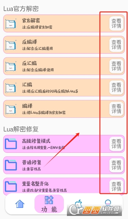 Lua Tools反编译工具下载安卓版是一款精彩的反编译工具软件,能够为用户们准备特色十足的免费官方编译工具,提供多款相关的代码服务,非常简单实用,更多精彩都在这里,提供便利的操作体验,简单方便,提供各种各样的特色功能操作,感兴趣的就来下载吧。