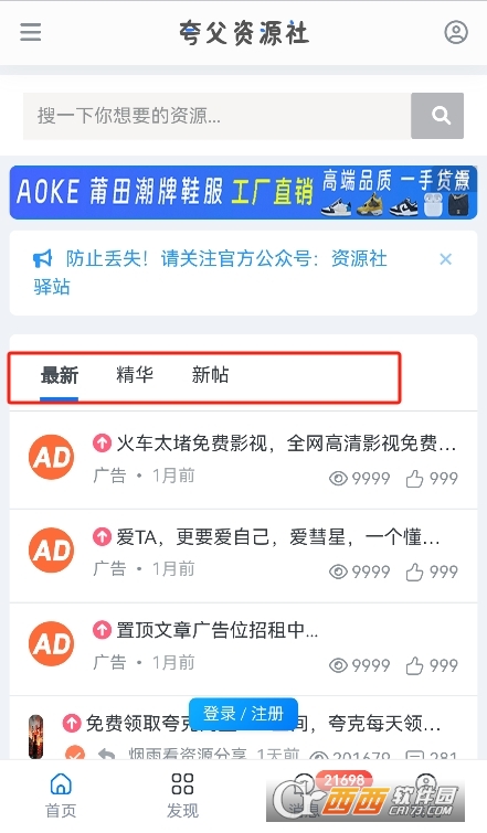 夸父资源社app最新版下载是一款简单好用的免费资源库软件,能够为用户们准备丰富的应用社区体验,获得各种各样的惊资源库,涵盖了不同类型的资源分享社区,各种惊喜应有尽有,非常好用,为大家准备了丰富的操作功能,欢迎小伙伴们前来下载吧。