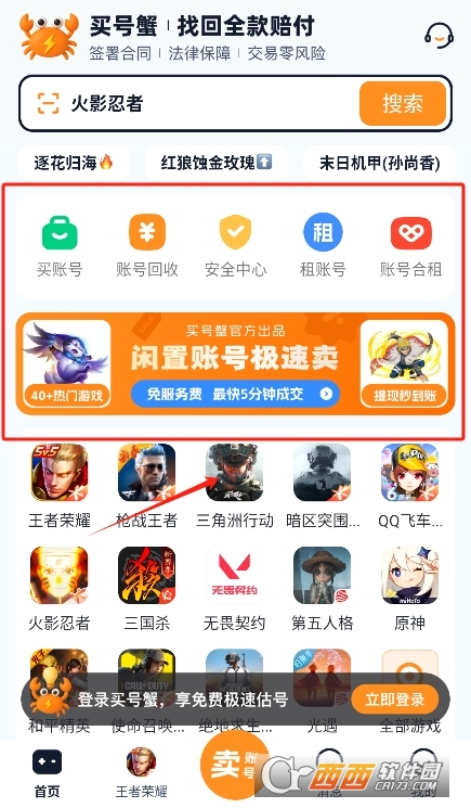 买号蟹交易app官方版下载最新版是一款非常好用的精彩账号交易软件,提供便利的惊喜游戏账号交易体验,为用户们准备惊喜的手机端账号交易模式,第三方平台资金保障,非常好用,提供优秀的精彩功能使用,获得更多折扣和福利,欢迎来下载试试吧。