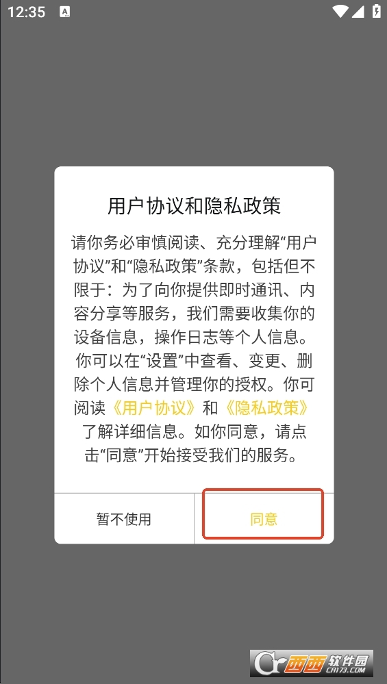 1、先把小熊猫辅助器下载安装好,第一次打开时,需要同意一下用户协议和隐私政策。