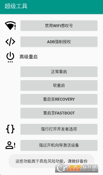 聚焦安卓进阶功能,实用性突出:特色在于专注于安卓设备的进阶功能,提供许多系统自带设置中没有的工具,如ADB强制授权、隐藏设置项等。这些功能能够帮助用户深入挖掘设备潜力,解决一些系统原生功能无法解决的问题,对于需要对设备进行深度管理的用户来说实用性极强。